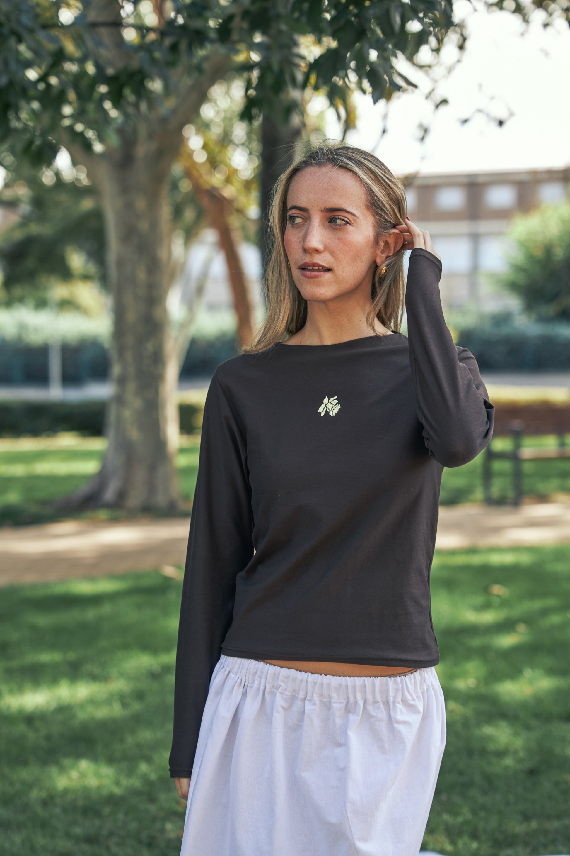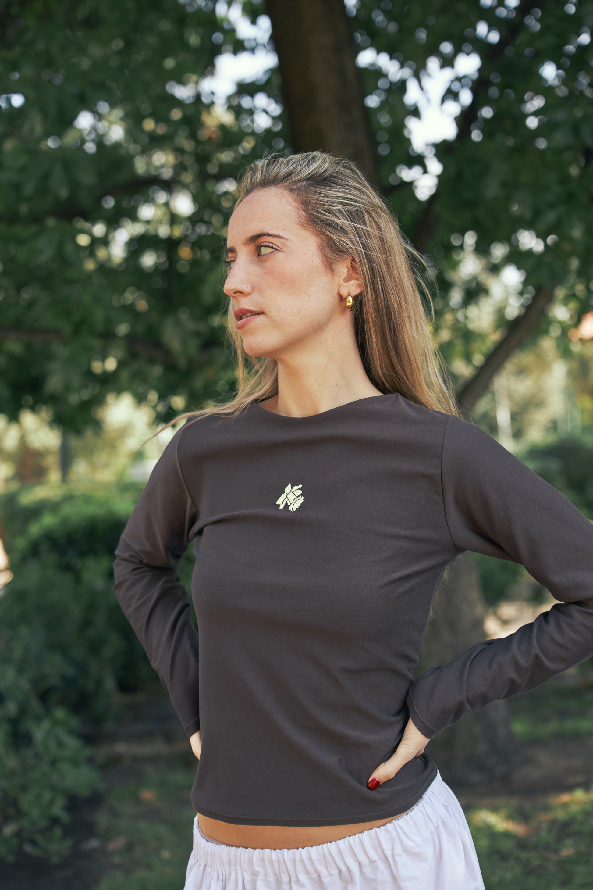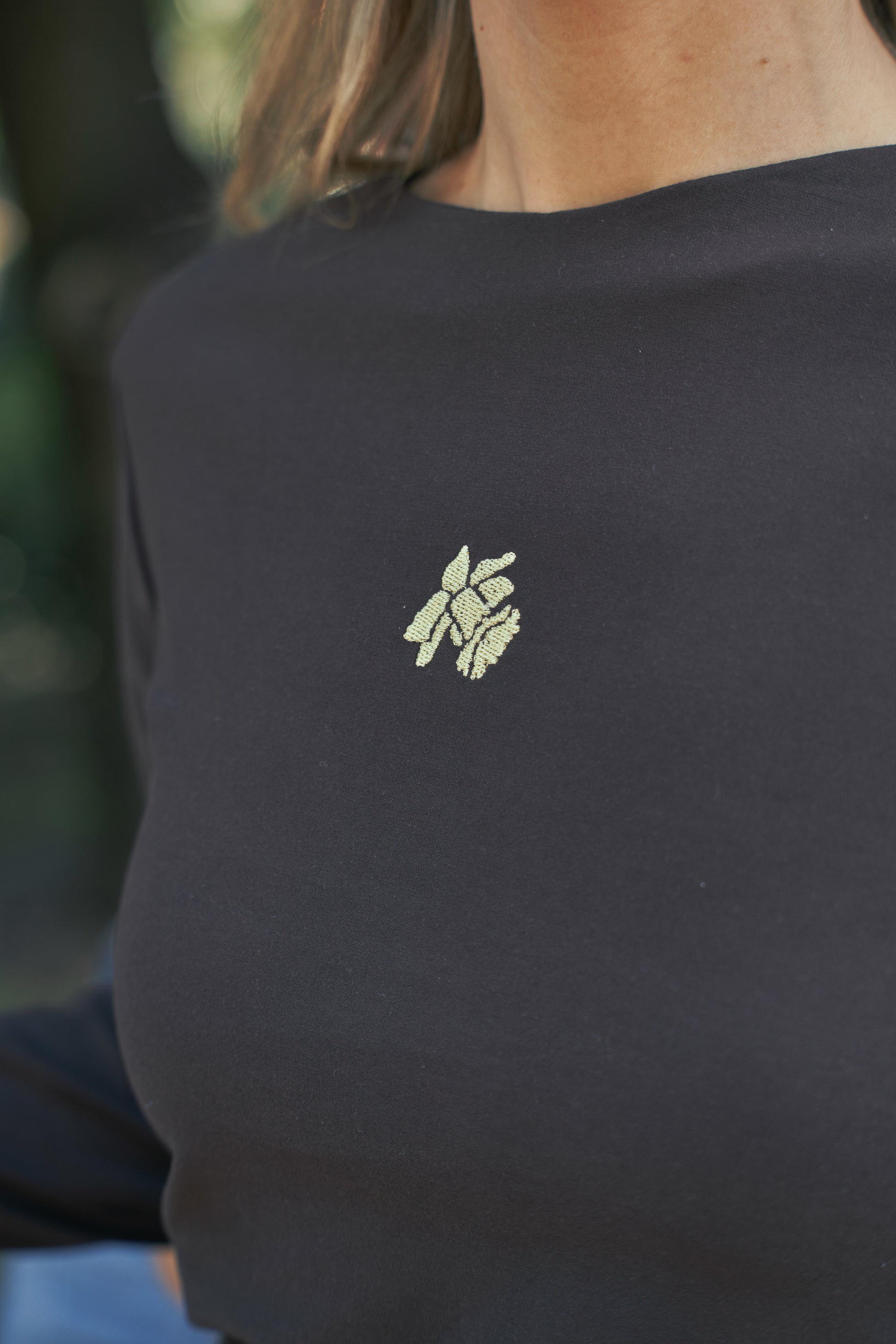 El Top Gritsándana es una de esas prendas que lo dicen todo sin necesidad de palabras. En tono marrón profundo, lleva bordado en el pecho la flor que da nombre a nuestra marca: la grichándana, pequeña pero fuerte, símbolo de resistencia y de belleza en lo sencillo. 🌱